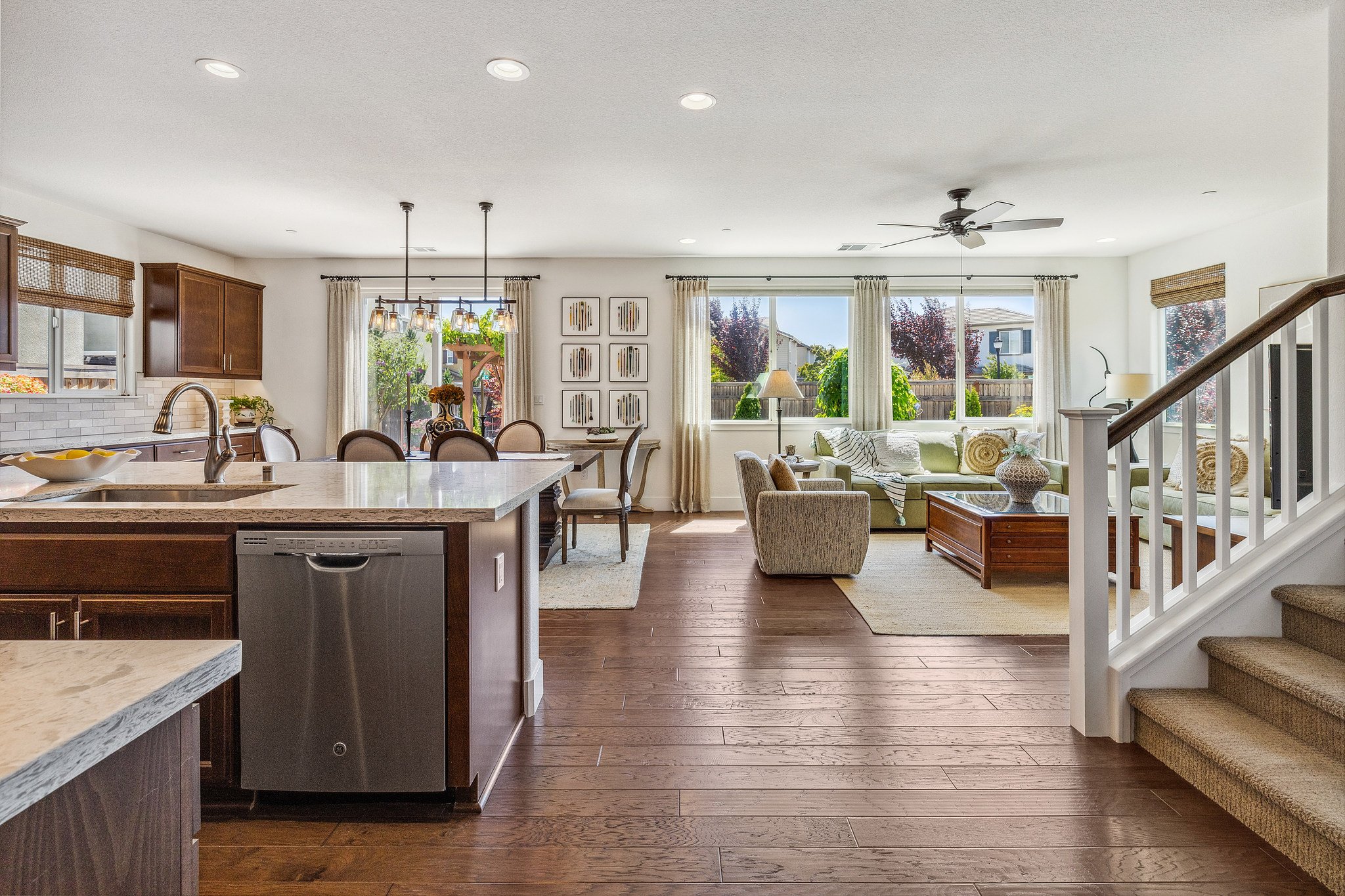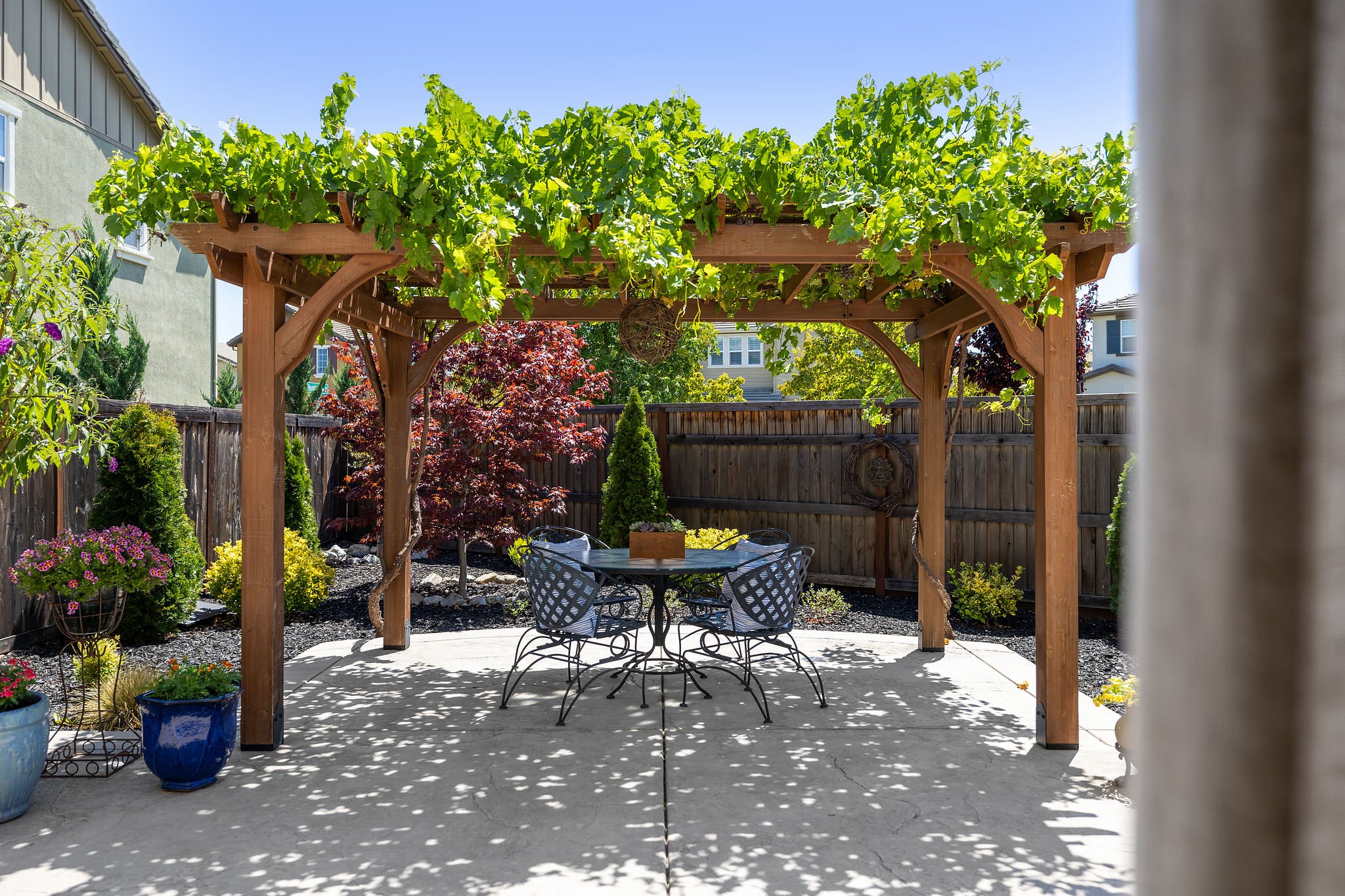 Style and substance meet in this home where meticulous attention to detail, modern finishes, and timeless sensibilities are on full display. The bright and open main level includes a spacious living area, gourmet kitchen with walk-in pantry, and dining area with extended built-in cabinetry. Generous upgrades feel both elegant and effortless and gorgeous wood floors run throughout the main level, which includes a home office (or bedroom) and full bath. Upstairs offers additional guest bedrooms and a spacious primary suite with dual sink vanities, soaker tub, separate shower, and massive walk-in closet. An open loft area is a great flex space or potential fifth bedroom. The coveted corner lot takes outdoor living to the next level with an impressive backyard. Gather under the pergola covered in mature grape vines, or indulge your green thumb with the raised garden planters. Completely turnkey and conveniently located near wineries and I-80/680, this home has it all.